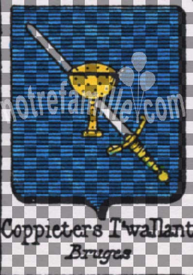 | | Objet média | Armes de Coppieters ’t WallantFormat : image/jpeg Dimensions de l’image : 398 × 567 pixels Taille du fichier : 85 Ko Type : Armoiries Note: d'azur, à une épée d'argent, garnie d'or, posée en bande, et une coupe couverte d… d'azur, à une épée d'argent, garnie d'or, posée en bande, et une coupe couverte d'or, brochant sur le tout.