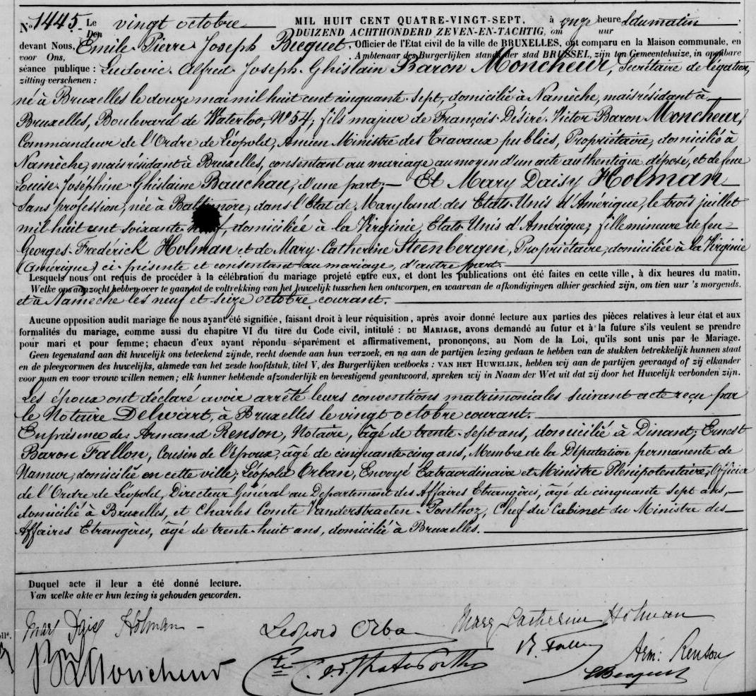 | |  | Mary Catherine SteenbergenNaissance : 25 octobre 1834 30 26 — Mount Airy, Shenandoah, Virginie, États-Unis Décès : 1 août 1928 — Bruxelles, Brabant, Belgique |