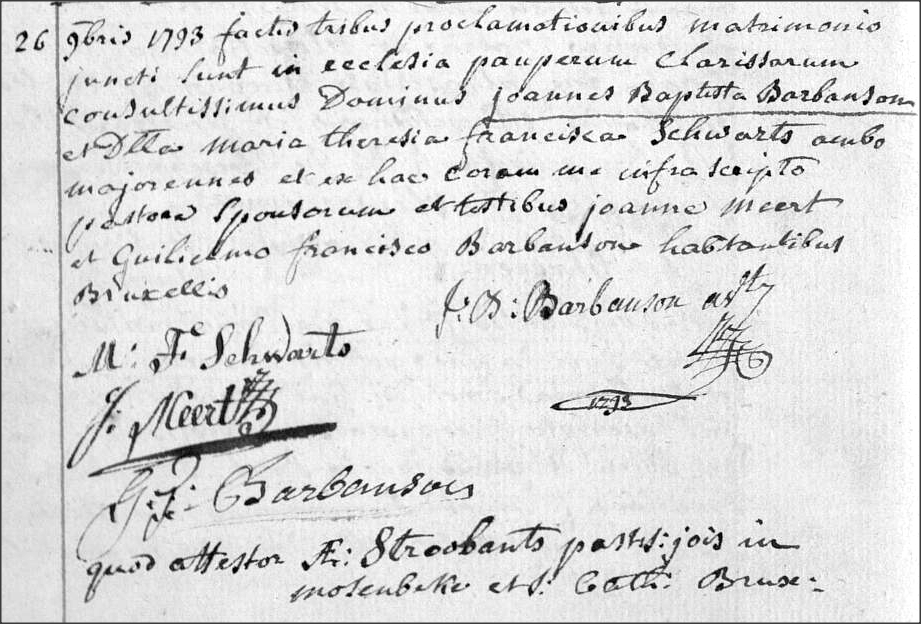 Acte de mariage de Jean-Baptiste Barbanson et Marie Thérèse Schwartz
