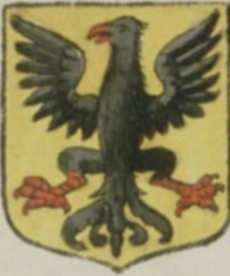 Note:Blasonnement: de sable au sautoir d'argent cantonné de 4 étoiles à six rais.