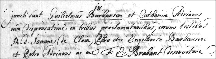 Acte de mariage de Guillaume Barbanson et Catherine Adriaens
