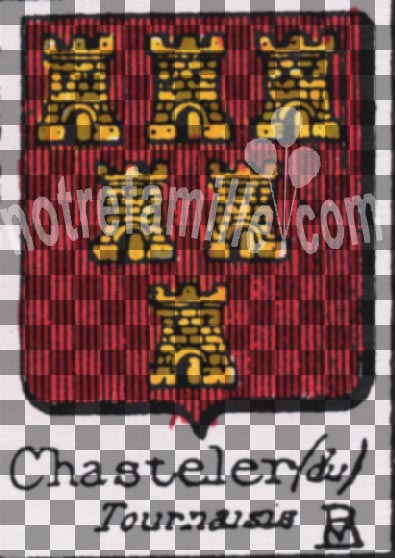 Supports: deux lévriers regardant d'argent, colletés et bouclés de gueules, tenant chacun une bannière, celle à dextre aux armes de l'écu, celle à senestre: de gueules à trois pals d'argent chargés chacun de trois pièces de vair d'azur; au chef d'or; qui est de Blois d'Arondeau.