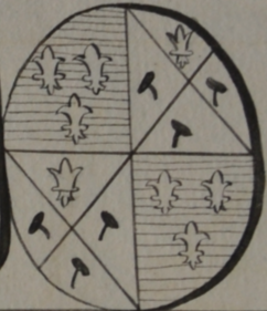 Note:écartelé aux 1er et 4me d'azur à trois fleurs de lis d'argent; aux 2me et 3me d'argen…