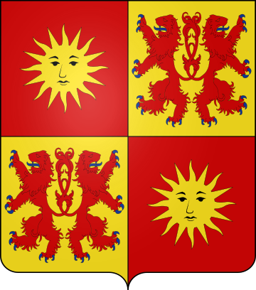 | | Objet média | Armes de Vaillant de JollainFormat : image/png Dimensions de l’image : 360 × 408 pixels Taille du fichier : 90 Ko Type : Armoiries Note: écartelé : aux 1 et 4, de gueules, à un soleil rayonnant d'or ; aux 2 et 3, d'or, à deux l… écartelé : aux 1 et 4, de gueules, à un soleil rayonnant d'or ; aux 2 et 3, d'or, à deux lions adossés de gueules, les queues en sautoir.