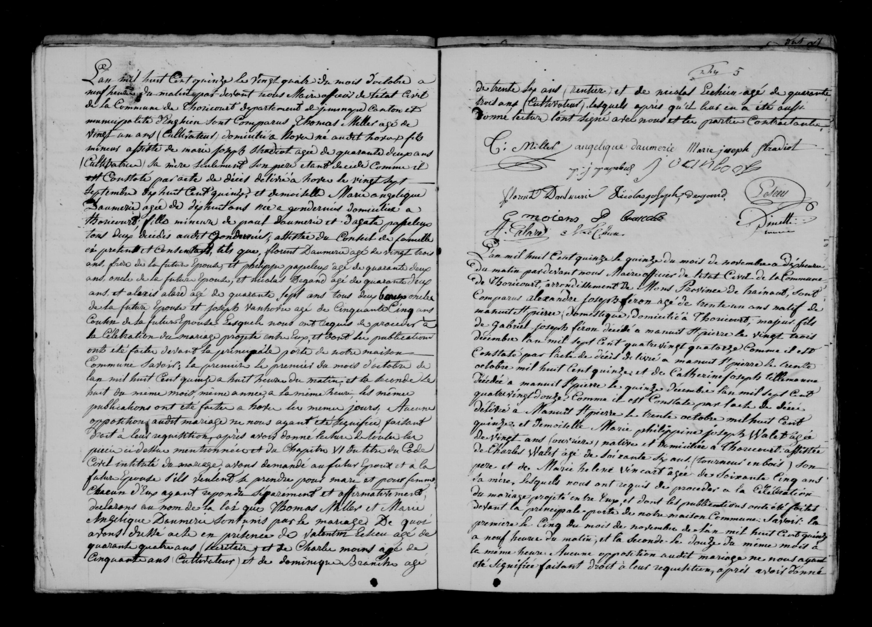Acte de mariage de Thomas Miller avec Angélique Daumerie
