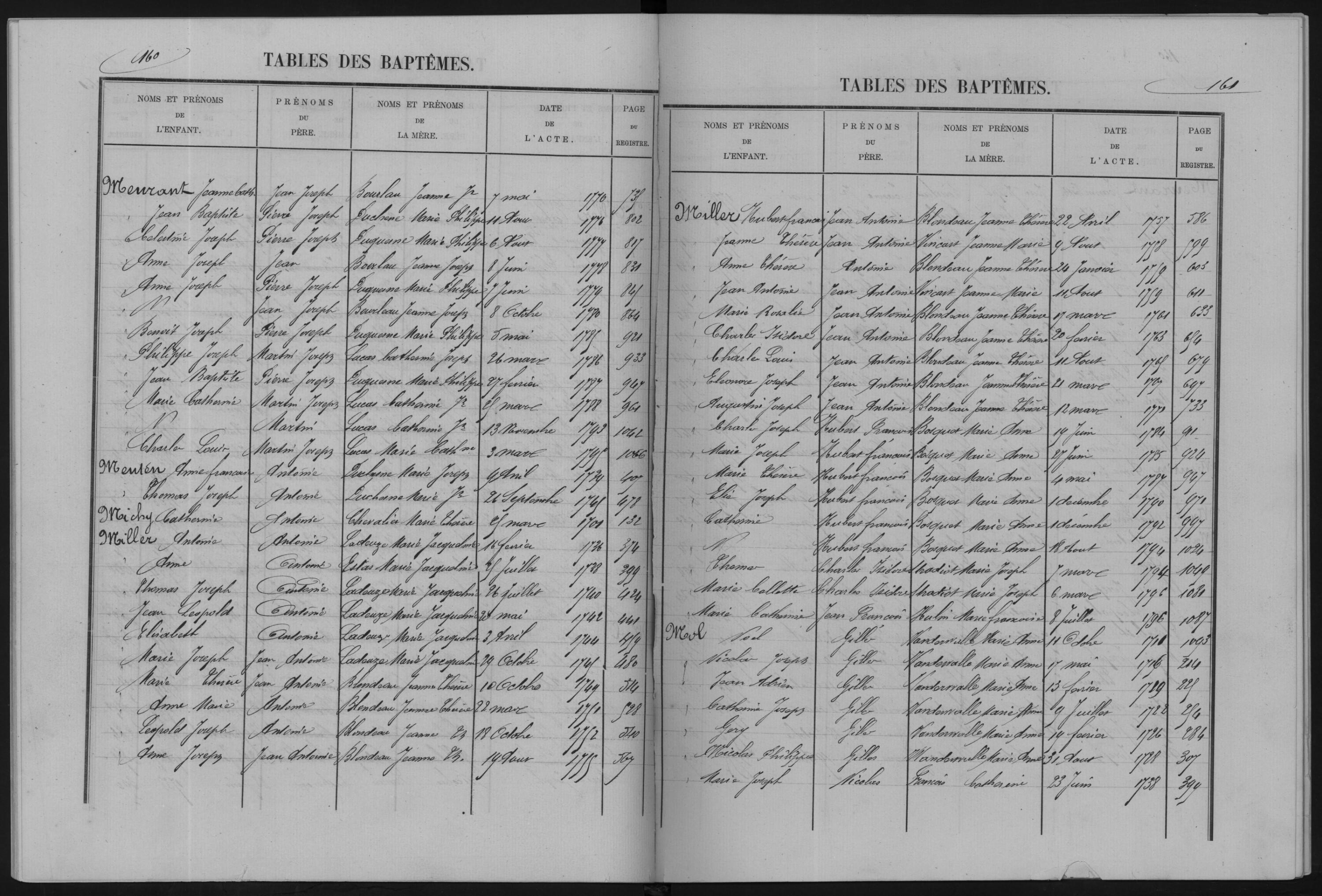Tables décennales des baptêmes à Hoves 1670-1797 - Miller