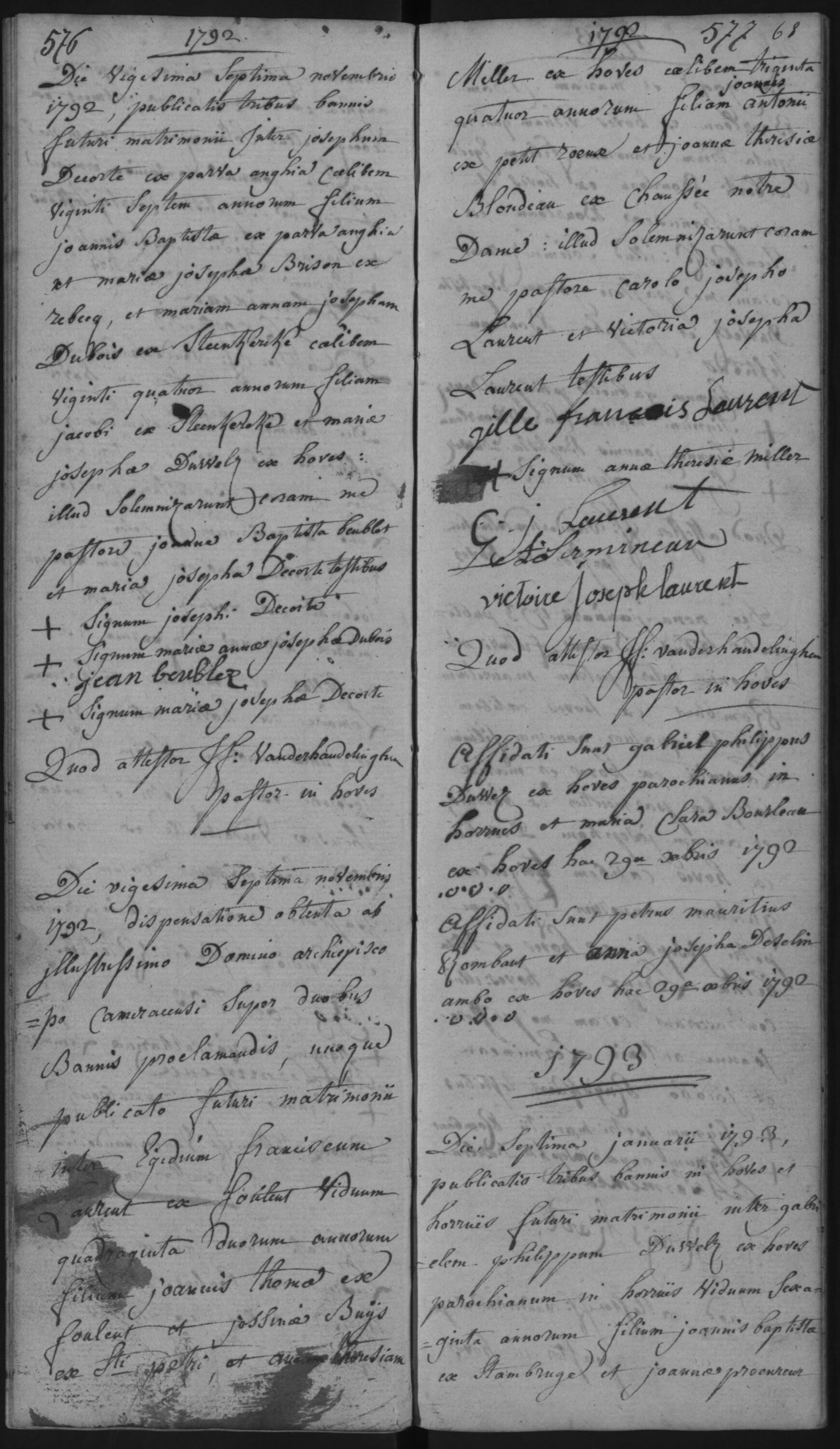 Acte de mariage d'Anne Thérèse Miller et Gilles François Laurent