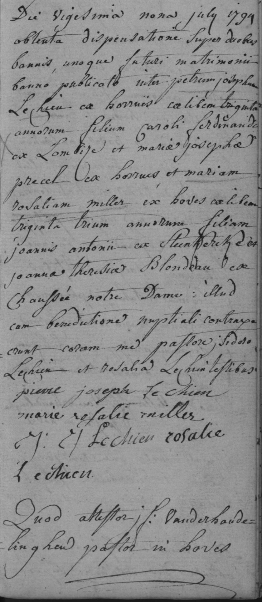 Acte de mariage de Marie Rosalie Miller et Pierre Joseph Lechien