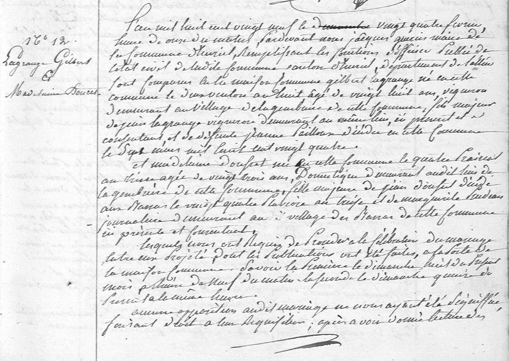 Acte de Mariage de Gilbert Lagrange avec Madeleine Doucet 1/2