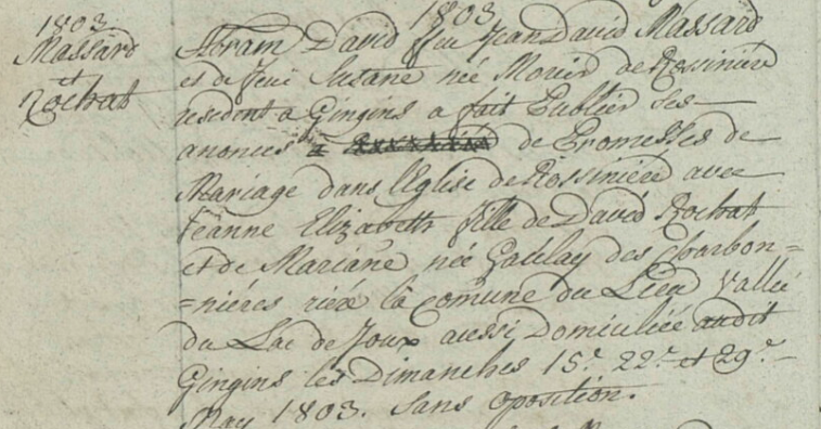 Acte de mariage Massard x 1803 Rochat