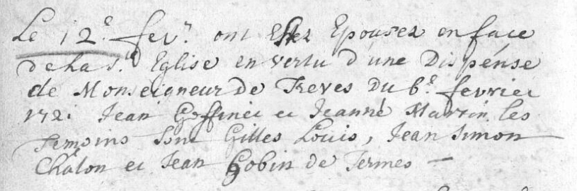 Acte de mariage Goffinet - Martin x 1721.