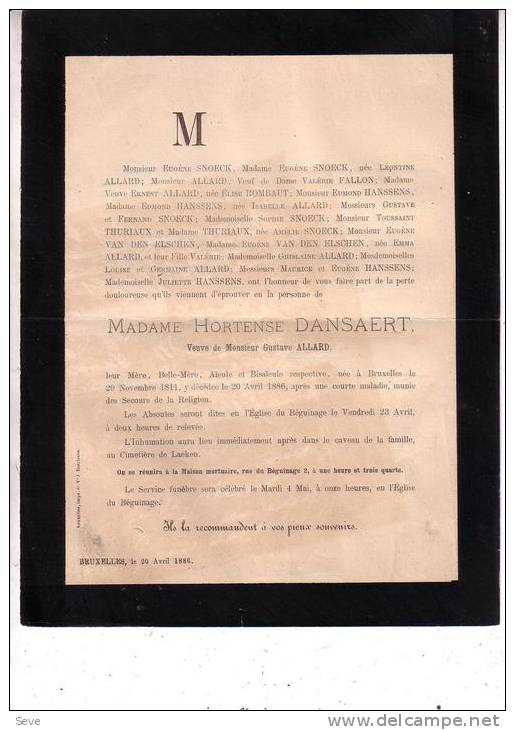 Faire-part de décès d'Hortense Dansaert, veuve Allard.