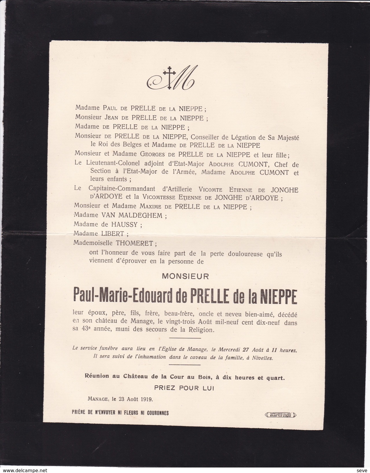 Faire-part de décès de Paul de Prelle de la Nieppe