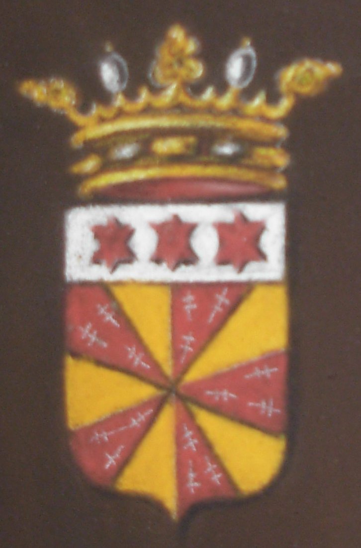 Gironné d’or et de gueules de dix pièces, chaque giron de gueules chargé de trois croix recroisettées au pied fiché d’argent ; au chef d’argent chargé de trois étoiles à six rais de gueules. Heaume : couronné. Cimier : une aigle naissante d’or. Lambrequins : d’or et de gueules. Devise : raison partout. © genealogie.deprelledelanieppe.be
