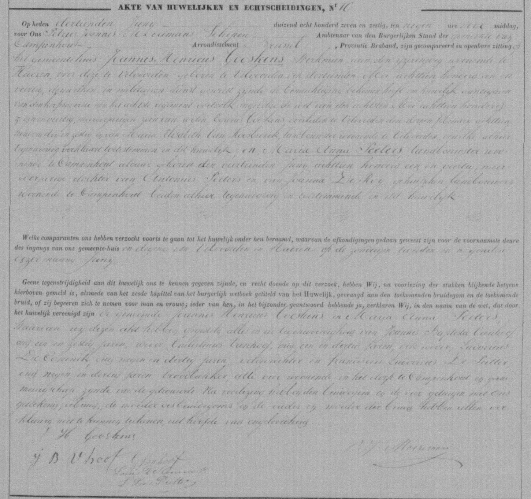 Acte de mariage de Jean Henri Gooskens et Marie Anne Peeters