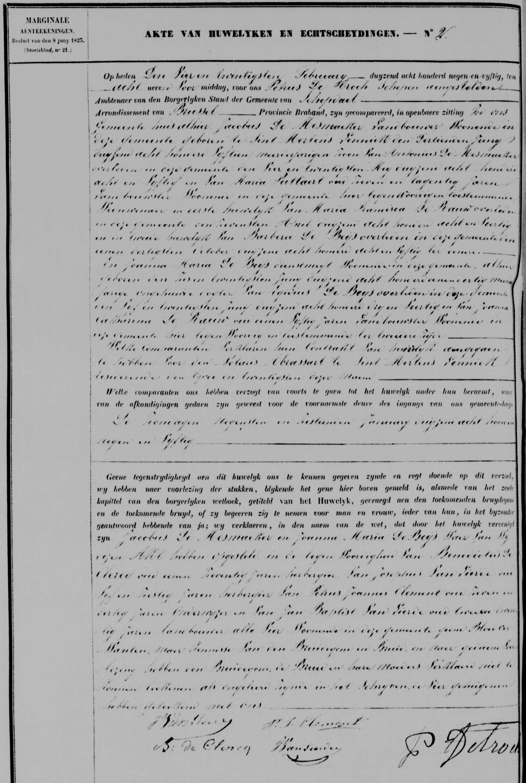 Acte de mariage de Jacques De Mesmaeker et Jeanne Marie De Beys