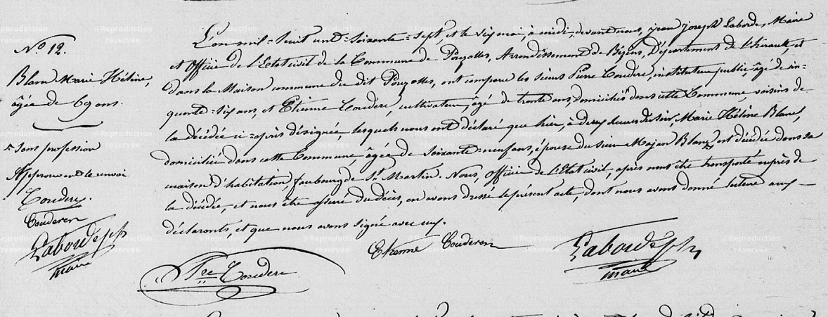 | Marie Hélène Blanc | vers 1798 | 228 | 1 | 5 mai 1867 | 158 | 69 | Pouzolles, Béziers, Hérault, France | 16 août 2021 - 18:18:22 | F | YES | YES | |||||