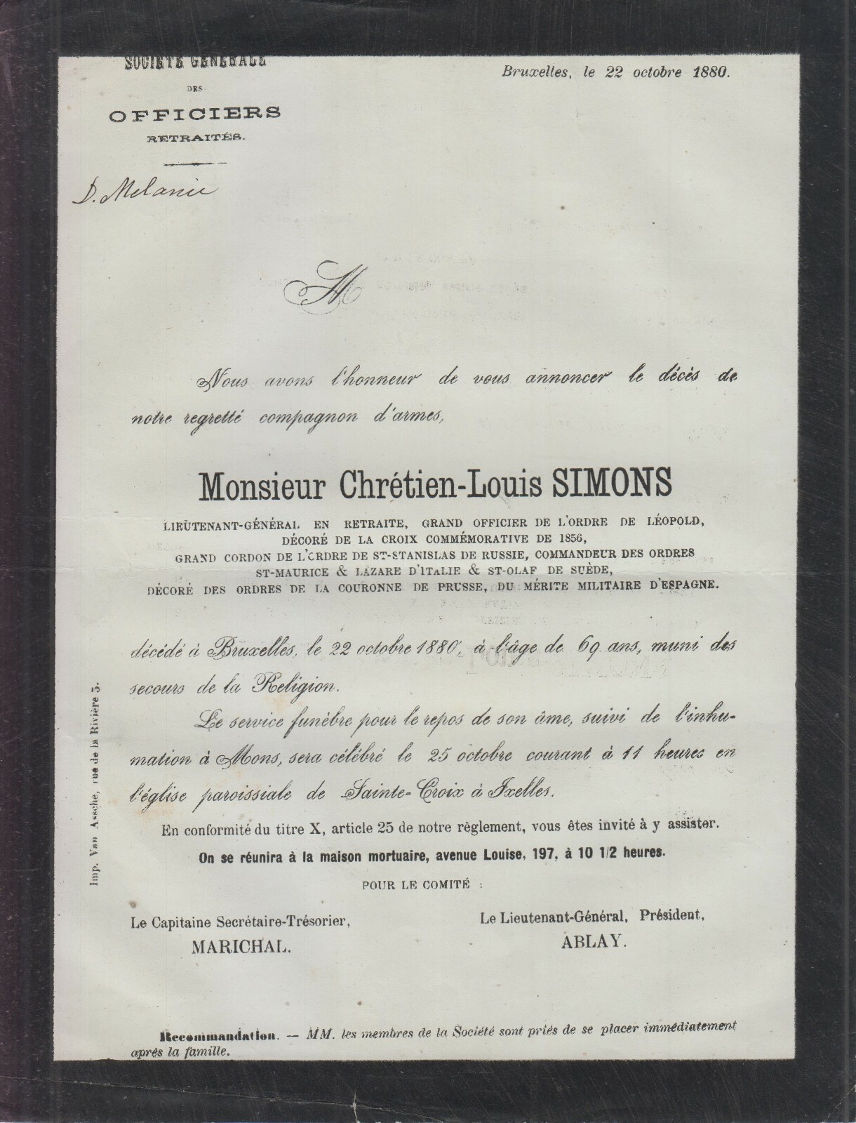 Faire part de décès de Chrétien Louis Simons