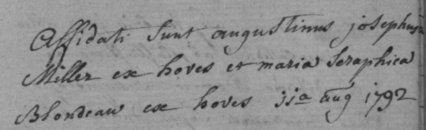 Acte de fiançailles d'Augustin Joseph Miller et Marie Séraphine Blondeau
