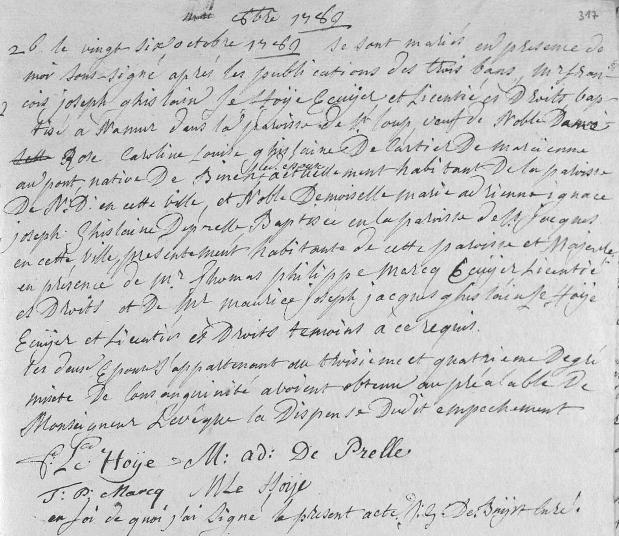 | François Joseph Ghislain de Le Hoye de La Potte | 33 | Dame Marie « Adrienne » Ignace Josèphe Ghislaine de Prelle | 27 | 236 | Nivelles, Duché de Brabant | 2 | 5 novembre 2025 - 21:53:58 | YESM | Y | ||||||