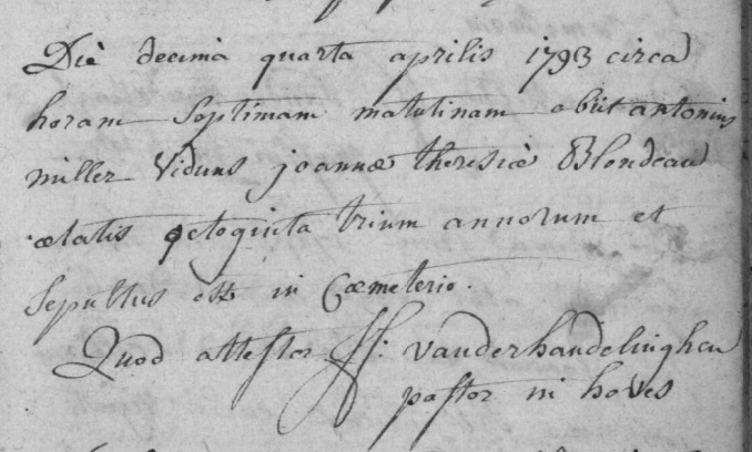 | Jean “Antoine” Miller | about 1711 | 315 | Petit-Rœulx-lez-Braine, Comté de Hainaut | 17 | April 14, 1793 | 232 | 82 | Hoves, Comté de Hainaut | October 20, 2025 - 5:06:45 p.m. | M | YES | YES | ||||