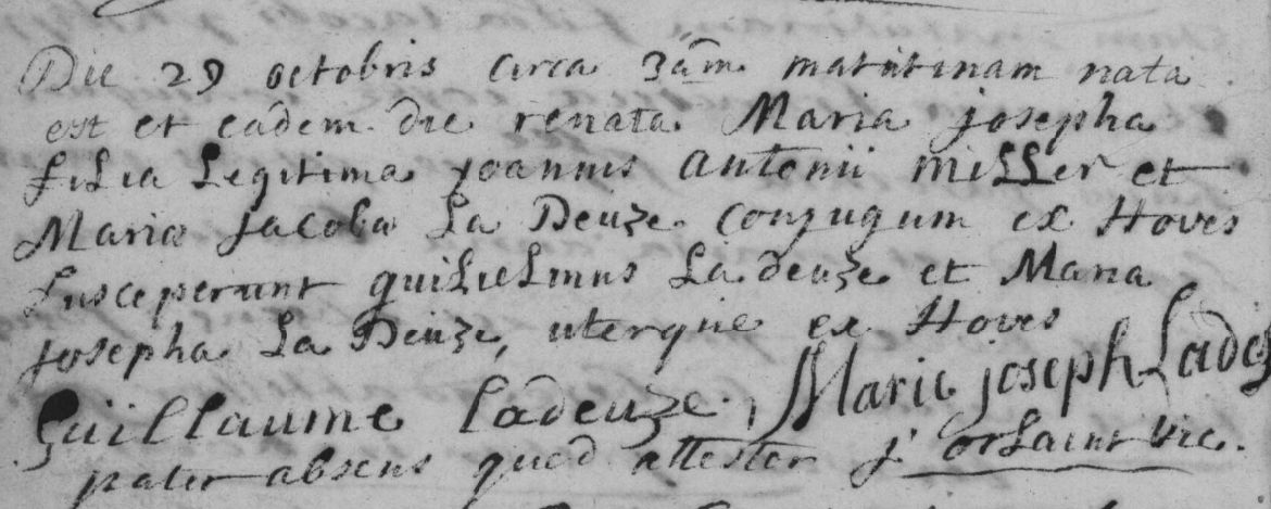 | Marie Joseph Miller | October 29, 1745 | 280 | Hoves, Comté de Hainaut | 0 | October 17, 2025 - 1:59:00 p.m. | F | YES | YES | ||||||||