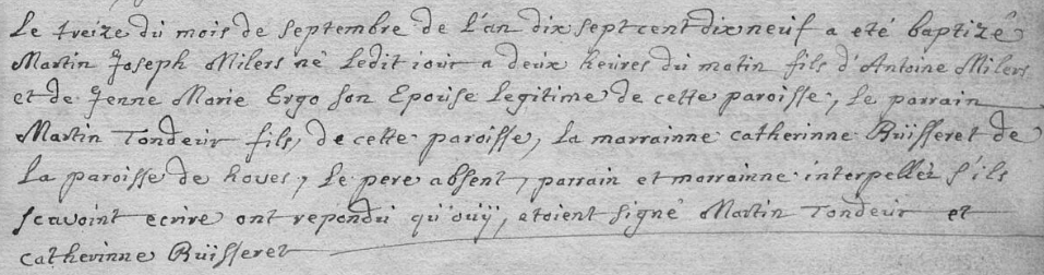Acte de baptême de Martin Joseph Miller °1718