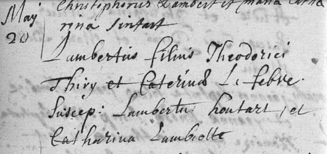 Acte de baptême de Lambert Thiry ° 1711