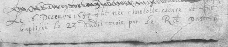 Acte de baptême de Charlotte Claire de Gozée ° 1657 1/2
