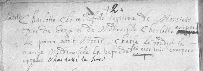 Acte de baptême de Charlotte Claire de Gozée ° 1657 2/2