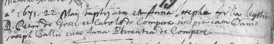 Acte de baptême de Anna Josepha de Gozée ° 1671