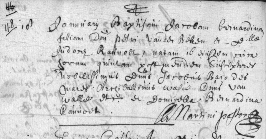 Acte de baptême de Bernardine Jacqueline van der Beken ° 1673