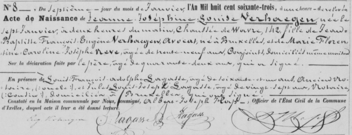 Acte de naissance de Jeanne Joséphine Louise Verhaeghen ° 1863
