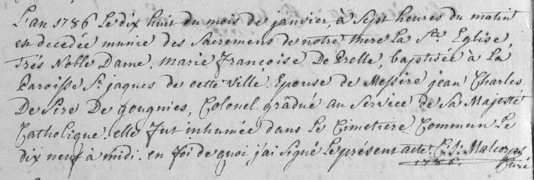 Acte de décès de Marie François de Prelle † 1786