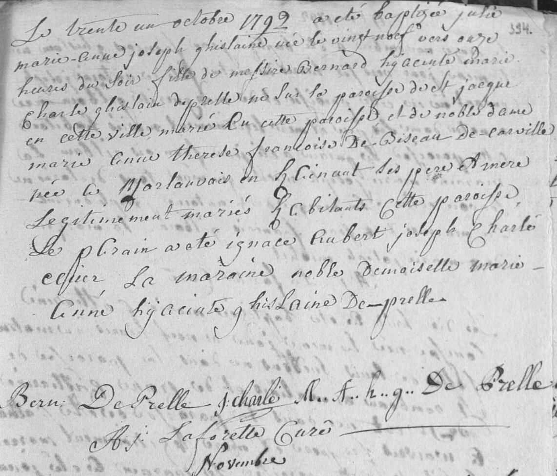 Acte de baptême de Julie Marie Anne Joseph Ghislaine de Prelle † 1792