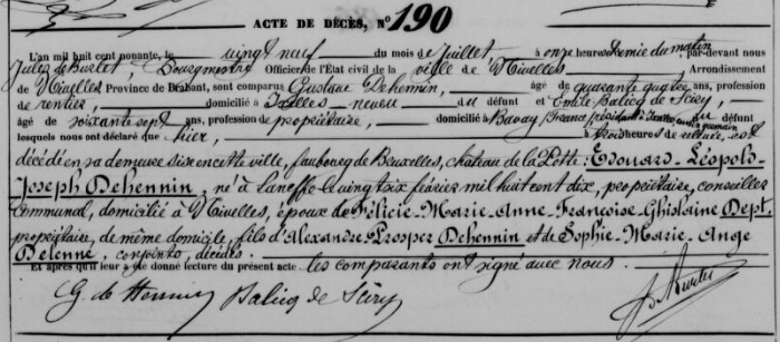 | Edouard Léopold Joseph de Hennin | February 26, 1810 | 215 | Laneffe, Namur | 0 | July 28, 1890 | 135 | 80 | Nivelles, Brabant, Belgique | November 7, 2025 - 7:52:42 a.m. | M | YES | YES | ||||
