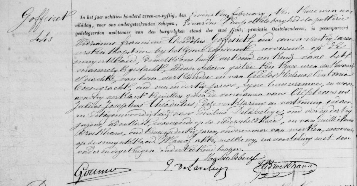 Acte de naissance d'Alphonse Jules Joseph Théodule Goffinet ° 1857