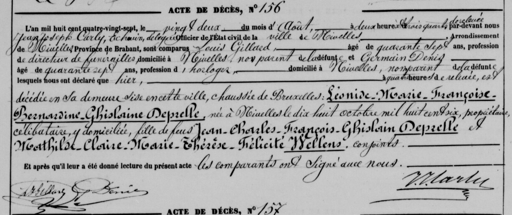 | Léonide Marie Françoise Bernardine Ghislaine de Prelle de la Nieppe | October 18, 1806 | 219 | Nivelles, Brabant | 0 | August 21, 1887 | 138 | 80 | Nivelles, Brabant, Belgique | November 17, 2025 - 10:40:04 p.m. | F | YES | YES | ||||