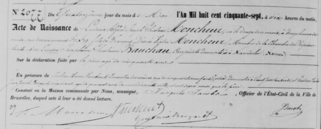 Acte de naissance de Ludovic Moncheur ° 1857