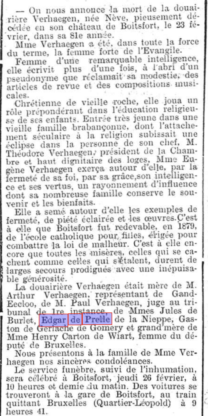 Annonce de décès de Florence Nève dans le Journale de Bruxelles