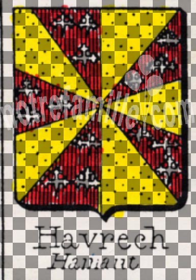| Note | Gironné d’or et de gueules de 10 pièces, chaque giron de gueules chargé de croix recroisettées, au pied fiché d’argent. Cimier : un griffon naissant d’or, tenant une bannière au blason de l’écu. Supports : deux griffons, tenant chacun une bannière au blason. Le timbre couronné d’or; cri : Enghien! Enghien! |