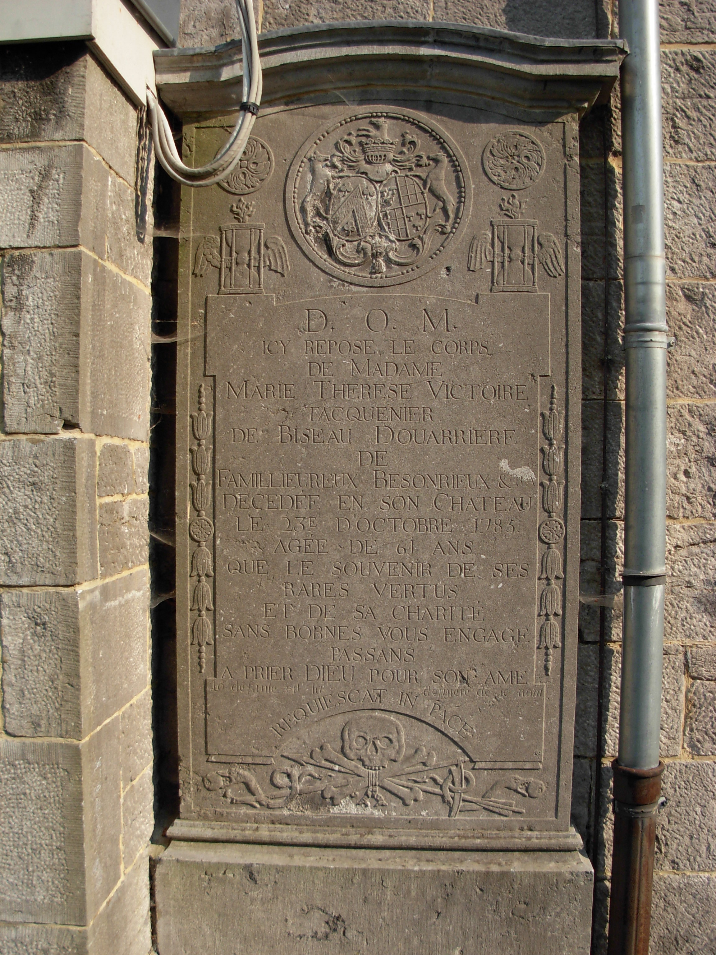 Format: jpeg Type: Tombstone Title: Pierre tombale de Marie Thérèse Victoire Tacquenier | | Note | D. O. M.